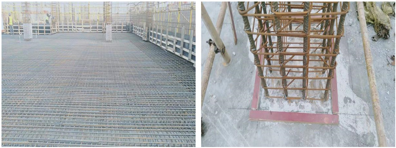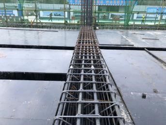 3. 施工亮点:钢筋间距排列平整顺直,柱根部架设挡浆板,避免混凝土漏浆。