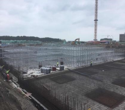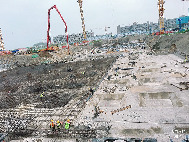 学习综合体A区负一层顶板满堂支撑架支设完成约26%,筏板钢筋完成约90%,筏板浇筑完成约30%,负一层柱子箍筋绑扎完成约35%。B区抗浮锚杆注浆完成约70%,防水完成约50%。C区板筋绑扎完成100%,筏板浇筑完成约90%,正在开展负一层顶板满堂支撑架支设施工。