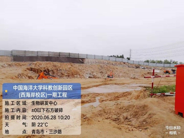 海洋生物资源开发中心正负零以下石方破碎、外运,完成约90%。