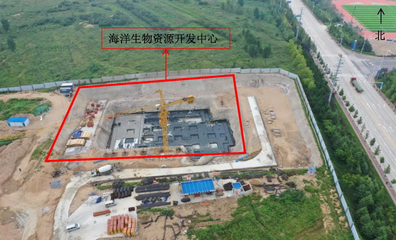 海洋生物资源开发中心防水及保护层施工完成,开始底板钢筋绑扎。