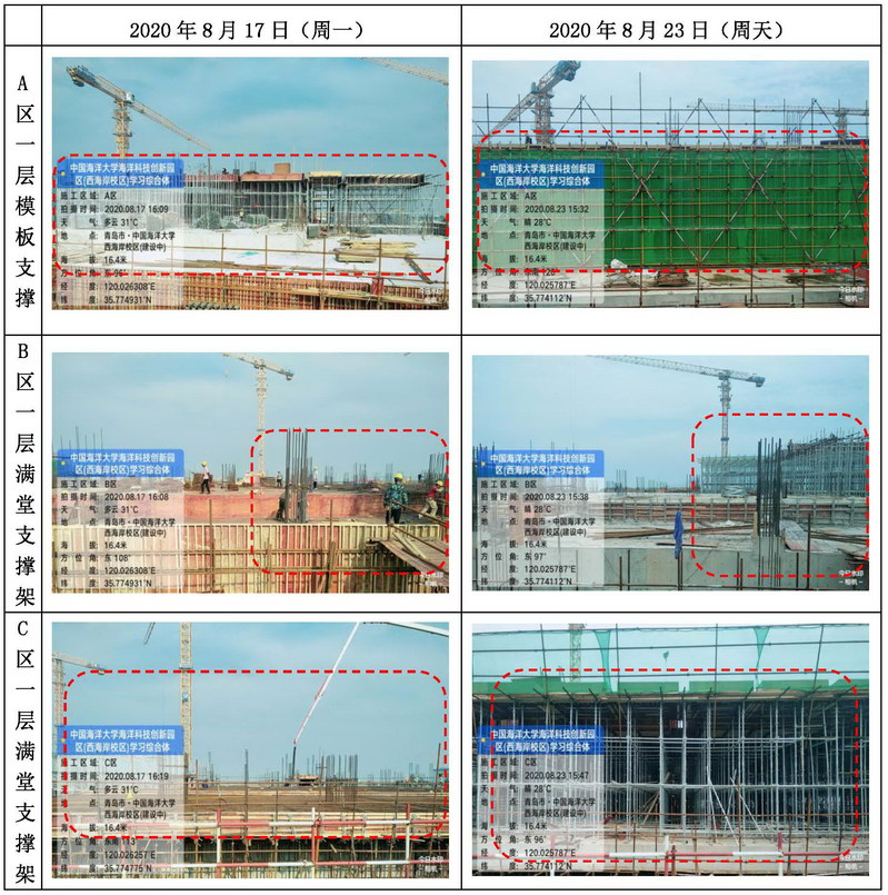 学习综合体A区一层顶板满堂支撑架支设完成,模板安装完成90%,一层顶板混凝土浇筑完成30%。非地下室部分独立基础回填完成。