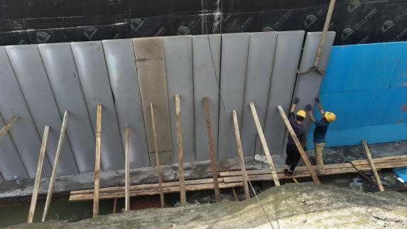 4. 本周施工亮点:使用轻质隔板作为地下室侧墙防水保护层。