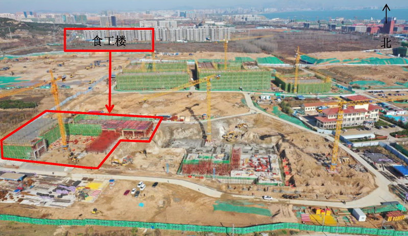 食工楼一层主体结构完成45%;二层主体结构完成30%。