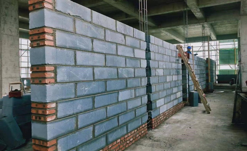 海洋生物资源开发中心4层砌筑现场图