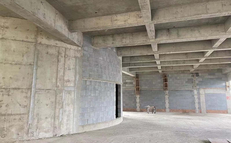 一至五层二次结构完成,六层二次结构完成60%;斜屋面二次结构完成90%