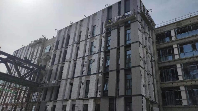 电子信息楼外墙保温一体板施工收尾
