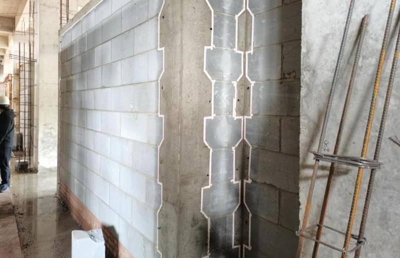 带地下室区域八层二次结构砌体完成50%;