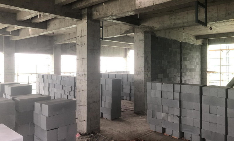 材料楼(一期)二次结构施工现场近景