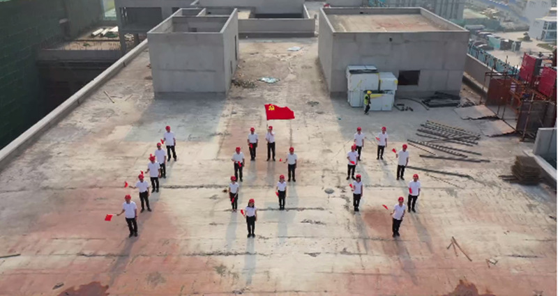 “唱支山歌给党听,我把党来比母亲……”悠扬的歌声传遍西海岸校区建设现场,学习综合体、电子信息楼、计算机楼、工程楼、材料楼、食工楼、学生宿舍和食堂、海洋生物资源开发中心、基建楼,楼前、楼顶,大家挥舞着鲜红的党旗,饱含深情地歌唱,唱出了奋战在校区建设第一线的建设者们对党和祖国的由衷热爱,用西海岸校区建设成效向建党100周年献礼。