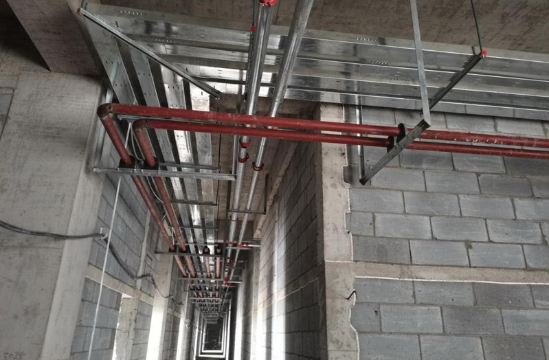 3 | 3#学生宿舍 | 走廊吊顶支架安装完成,电气二次配管安装完成,给水管道安装完成90%,内墙抹灰完成30% |
