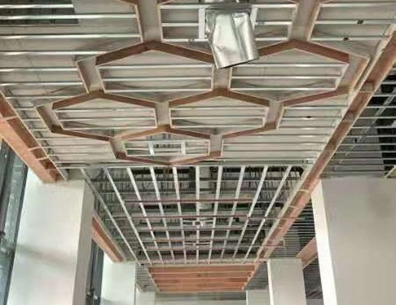 计算机楼一层四段大厅吊顶施工近景