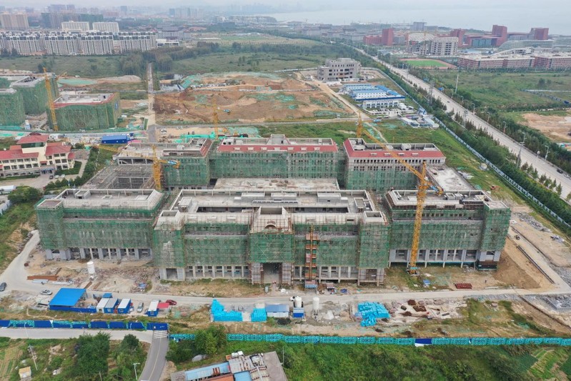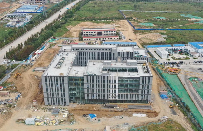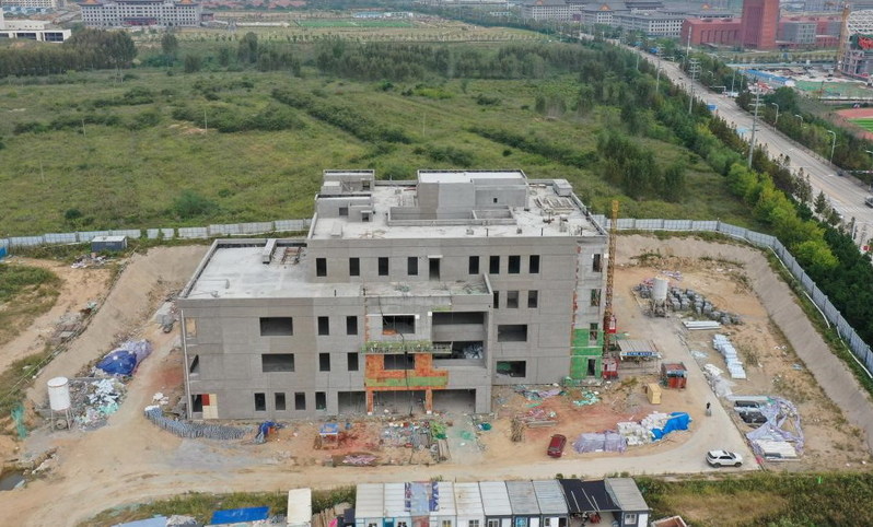 海洋生物资源开发中心本周进展:外墙保温完成,开始室内吊顶施工。