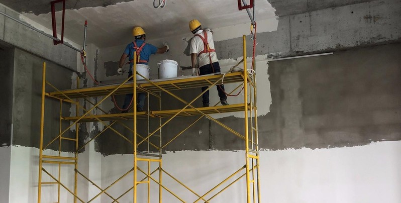 食工楼内墙抹灰施工近景