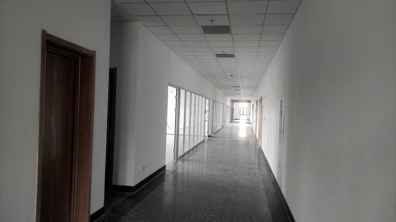 电子信息楼走廊区域乳胶漆喷涂施工完成近景