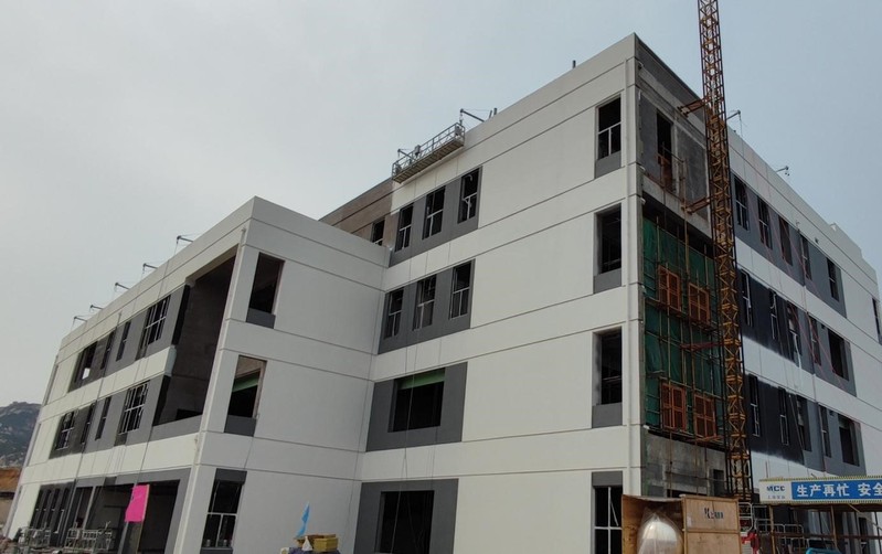 海洋生物资源开发中心本周进展:室内吊顶施工完成32%,门窗框安装完成80%,外墙真石漆施工完成45%。