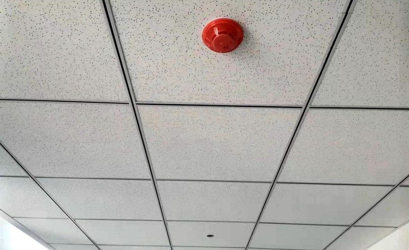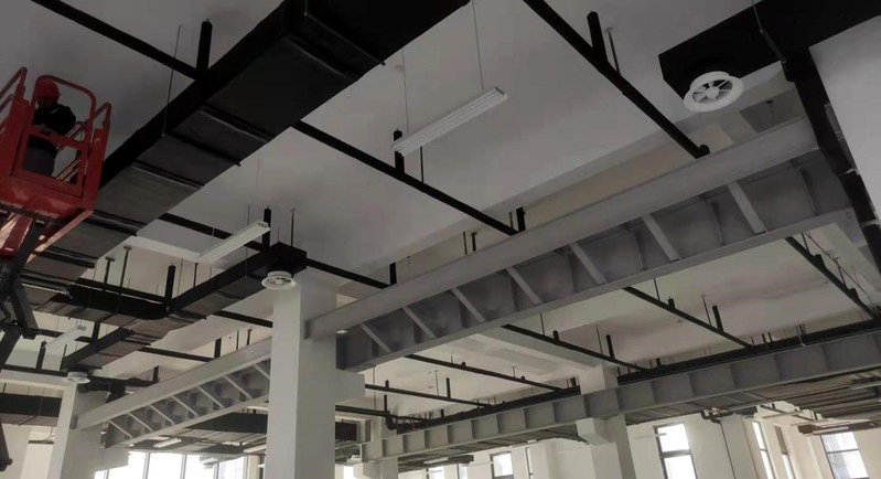 计算机楼走廊吊顶施工近景