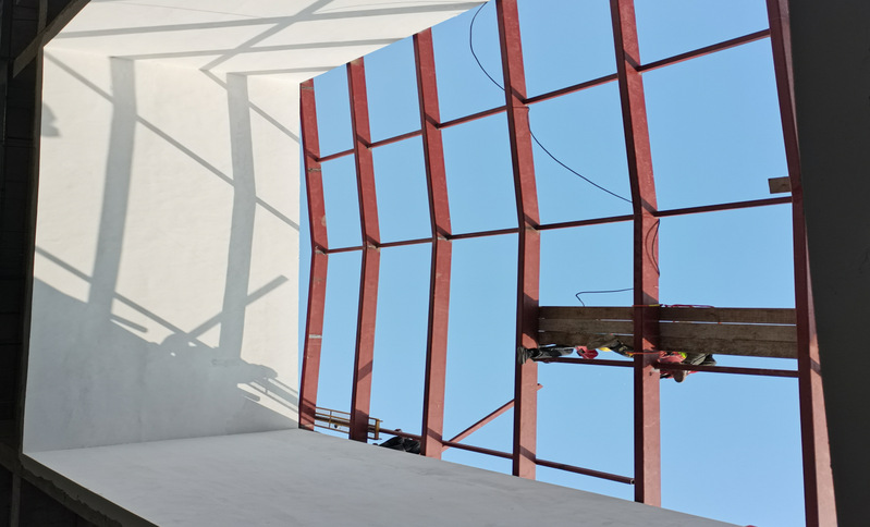 材料楼(一期)采光顶骨架焊接施工近景