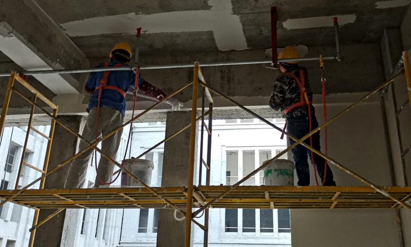 西区学生宿舍与食堂内墙腻子施工近景