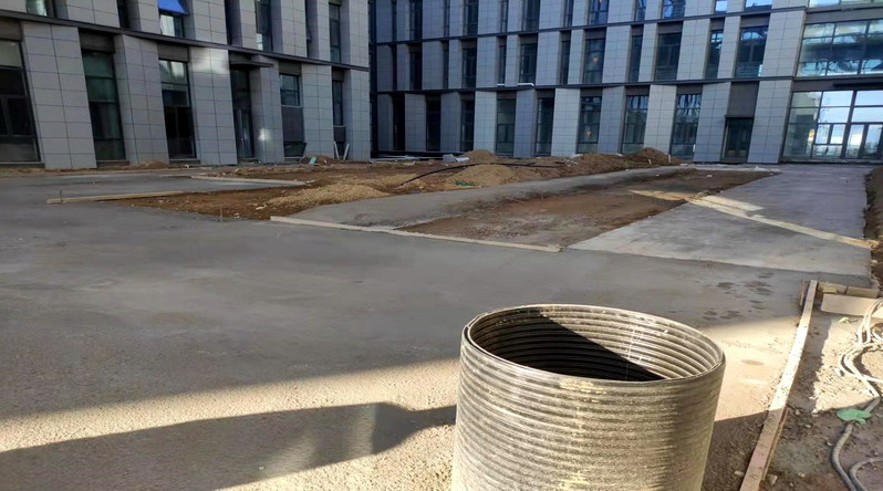 电子信息楼室外地下室种植顶板铺装区域垫层施工近景