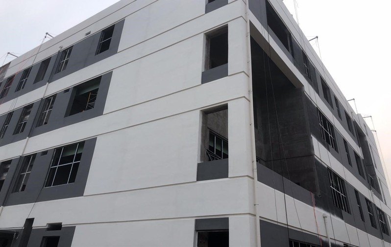 5. 食工楼本周进场腻子40吨,窗框100樘,岩棉保温板1500平方米。