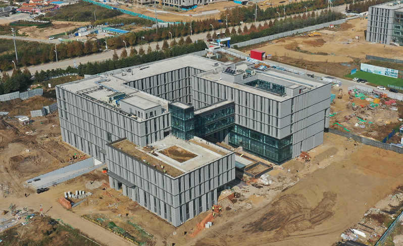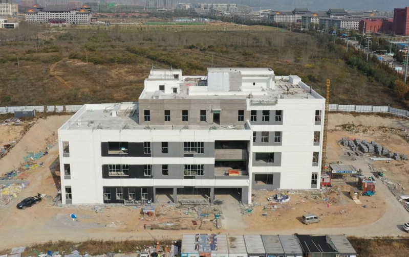 海洋生物资源开发中心本周进展:室内吊顶施工完成45%,外墙真石漆施工完成80%。