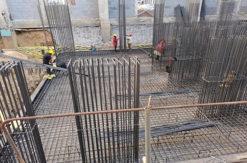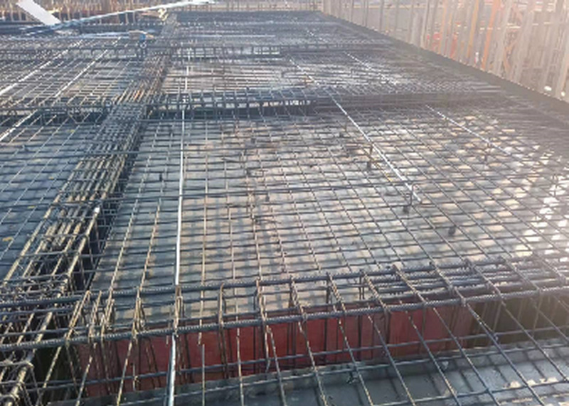 教工公寓16#楼八层顶板钢筋绑扎施工近景
