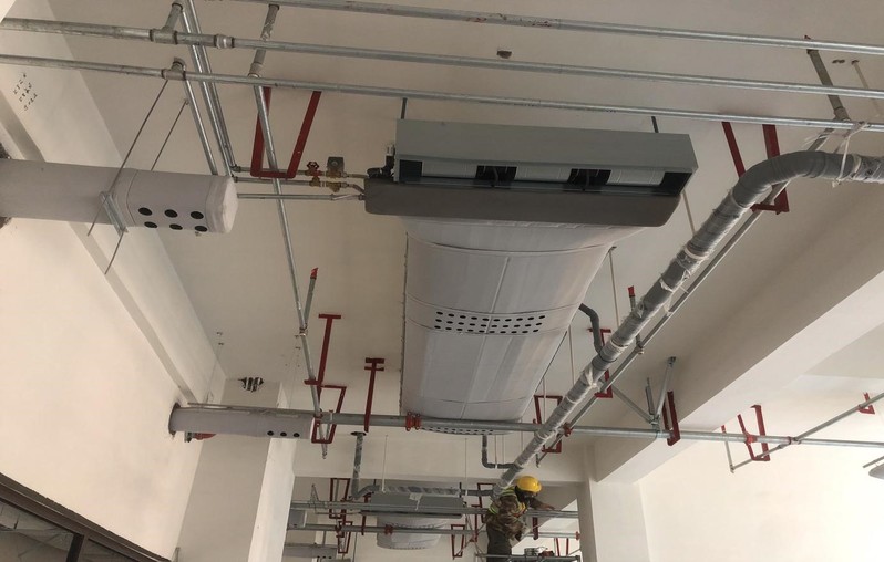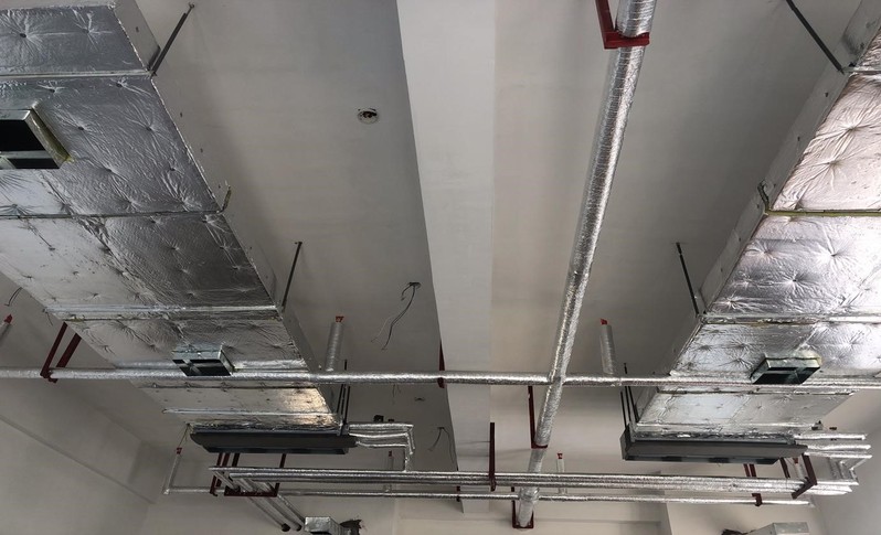 材料楼(一期)管道保温施工近景