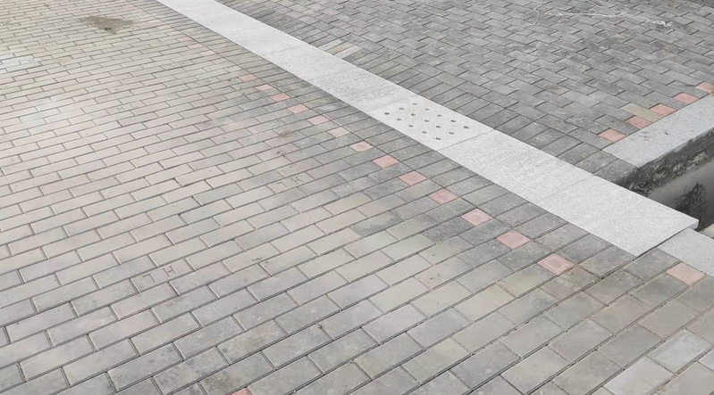 电子信息楼室外透水砖铺装施工近景