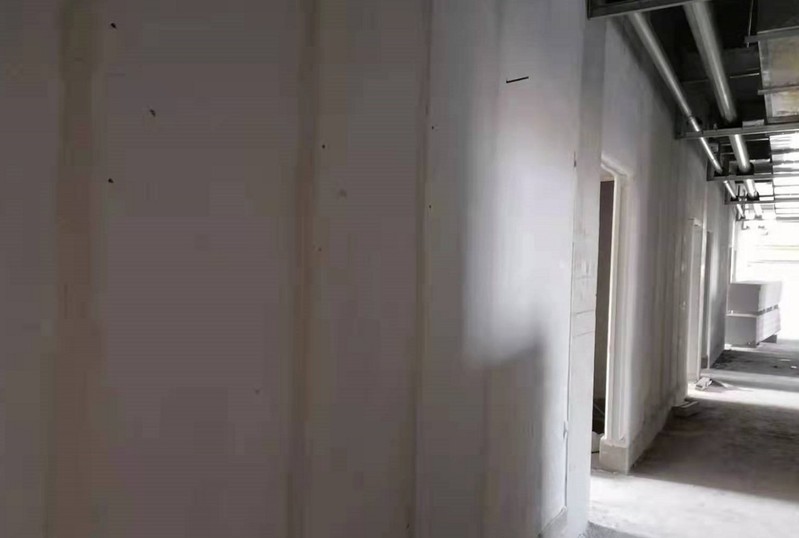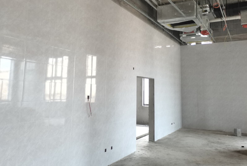 材料楼(一期)走廊石材施工近景