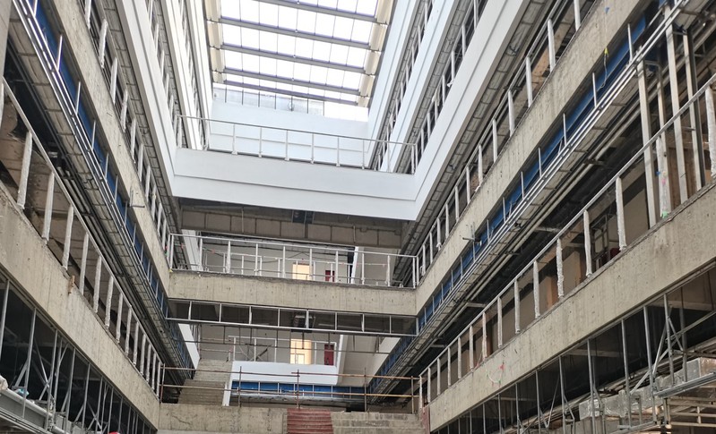 工程楼中庭装修施工近景