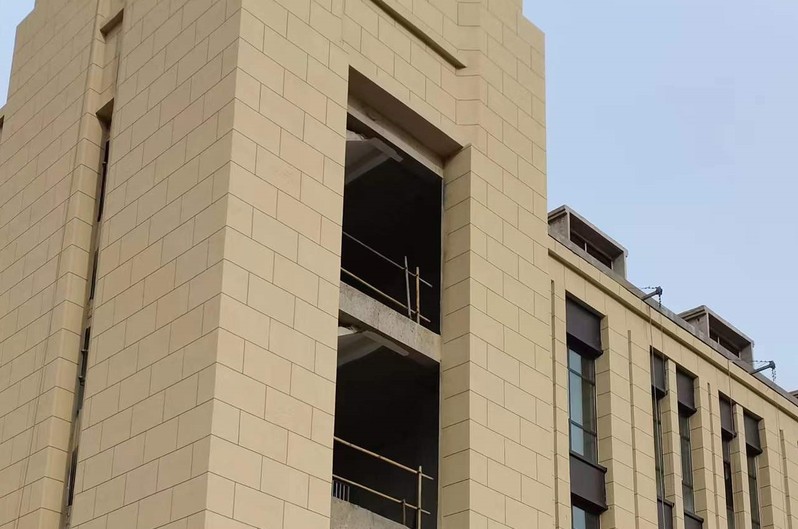 食工楼真石漆施工近景