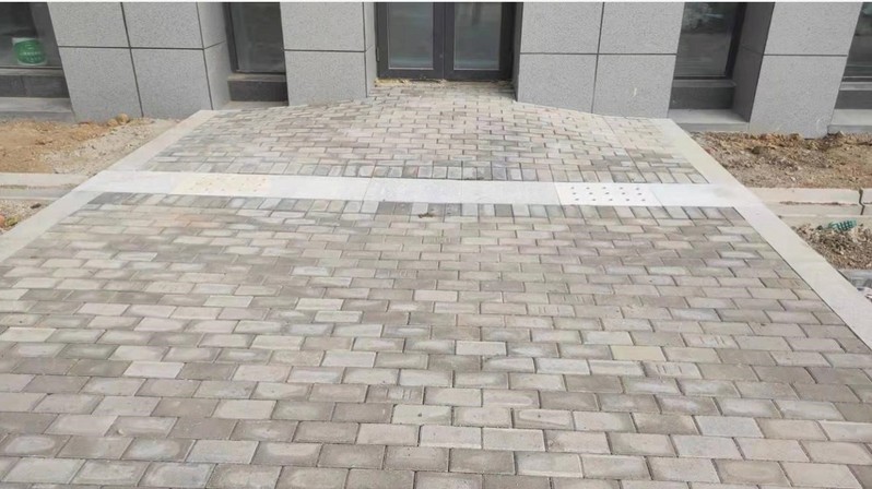电子信息楼室外透水砖铺贴施工近景