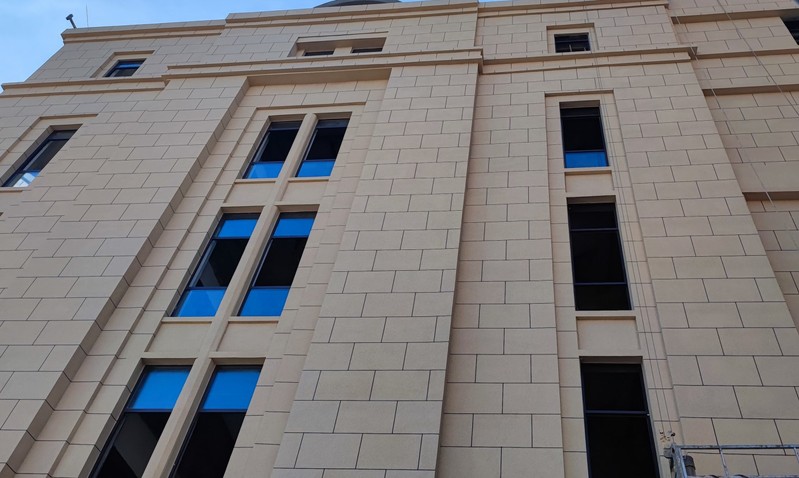 材料楼(一期)本周进展:幕墙施工完成65%,公共区域石材铺贴施工完成25%