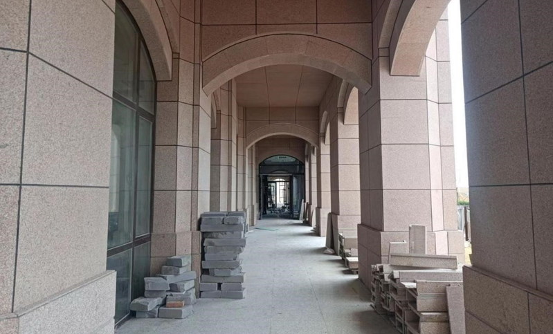 6 | 半地下学生活动中心 | 走廊石材铺贴完成10% |