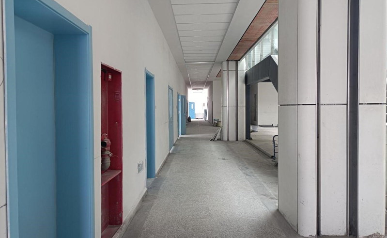 材料楼(一期)走廊装修施工近景
