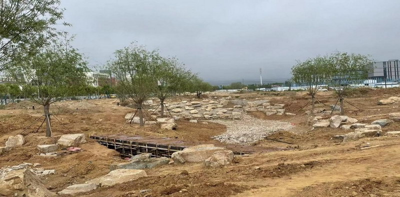 东区南侧水系河底砾石施工现场照片