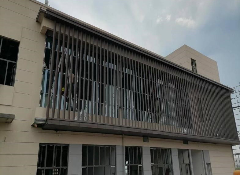 听海餐厅外立面格栅施工近景