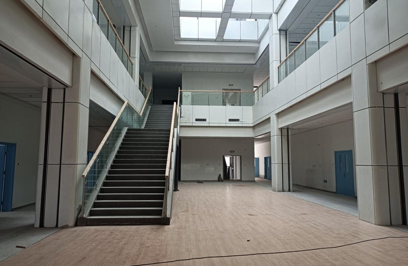 1 | 主楼 | 吊顶龙骨施工完成; 二层、三层水磨石地面铺贴完成90%; 二层室内装饰铝板施工完成60%; 4~6层室内幕墙龙骨组装完成90% |
