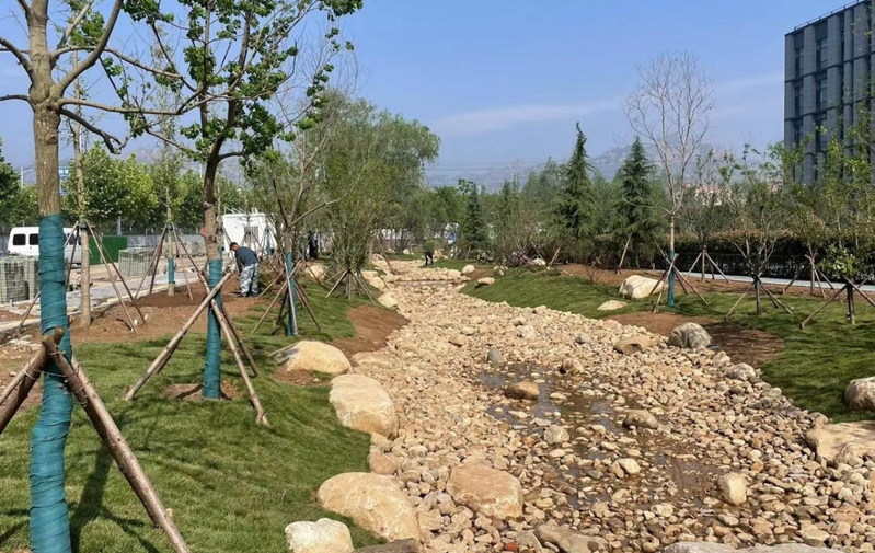 东区南侧水系西延段河底砾石及草坪施工现场照片