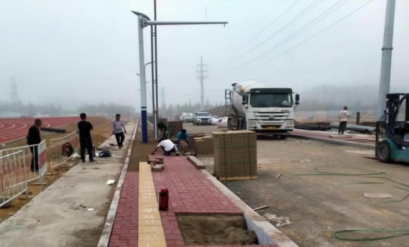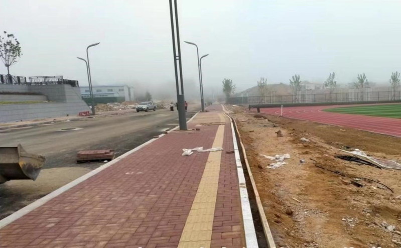 道路沥青下部面层摊铺完成,人行道铺装完成80%,路灯安装完成80%,智能交通设施线路铺装完成、基础施工完成,绿化土地整理完成70%。给水工程自来水公司已经打压验收通过并注水清洗。