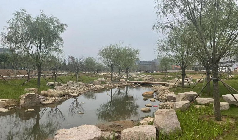 东区南侧水系乔木栽植现场照片