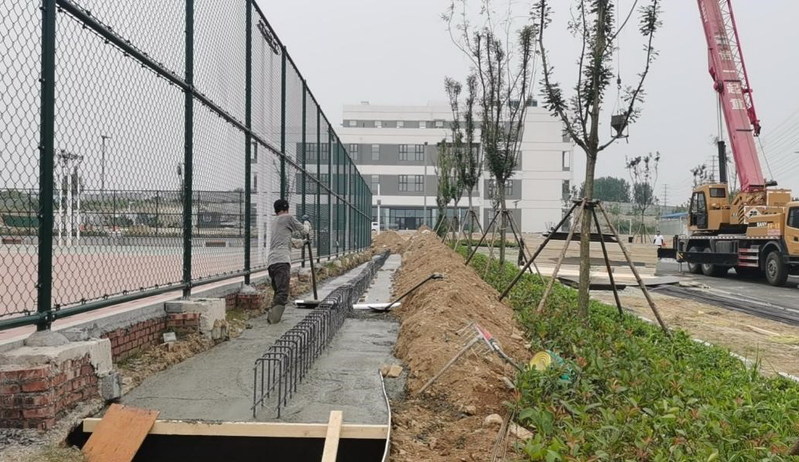 室外环境整治体育场训练墙施工近景