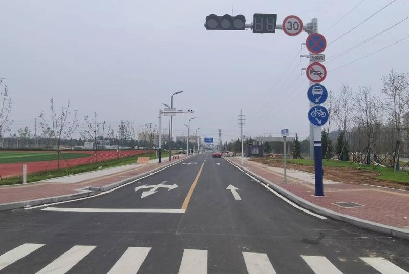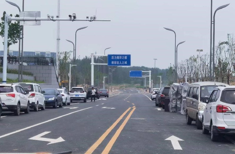 道路划线施工收尾。