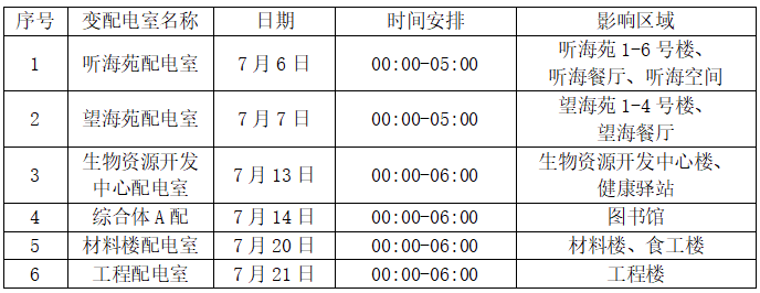 电力保障:宝冶遗留问题整改,停电检修计划如下: