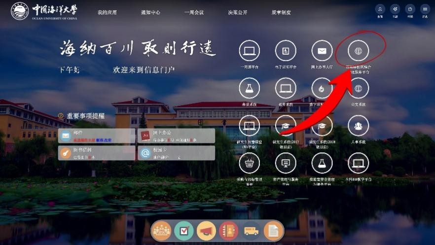 3.登录信息门户网站后选择“西海岸校区综合管理服务平台”也可以一键进入综合管理服务平台网站。