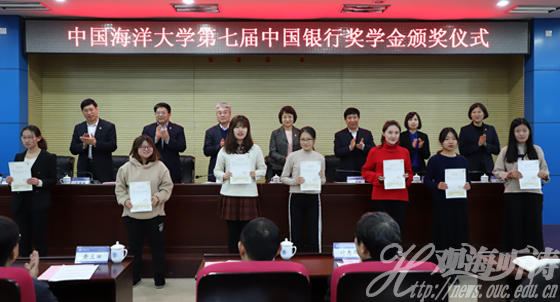教育基金会秘书长陈忠红主持颁奖仪式。中国银行青岛市分行、市南第二支行,学校学生工作处、党委研究生工作部、教育基金会、财务处等有关负责人及所有获奖学生参加颁奖仪式。