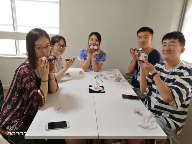第三天的行程安排了前往镰仓的鹤岗八幡宫、参观国宝馆、镰仓大佛等。随后又亲手制作日式甜点—樱花和果子,同学们仔细聆听制作方法,细心捏制,一朵朵美丽的樱花在每个同学的手中绽放。下午,身着日本浴衣,脚踏草履木屐参观《灌篮高手》的取景地之一——江之岛,体验开店150多年的温泉旅馆“岩本楼”,感受到了别样的传统日本文化。
