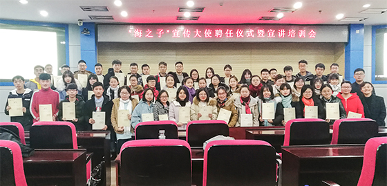 本站讯 12月28日,由学生工作处联合本科生招生办公室共同主办的“海之子”宣传大使聘任仪式暨宣讲培训会在行知楼报告厅举行,80余名宣传大使团队代表参加培训。
