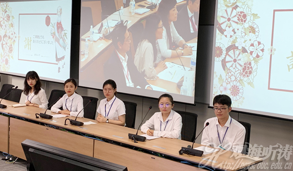 高校互访方面,研修团前往了东京大学驹场校区进行参观,受到了东京大学师生的热烈欢迎,包括海大研修团队在内的中国学生与东京大学学生进行了亲切的交流,并以小组为单位围绕“环境与经济”的主题进行了深入讨论。
