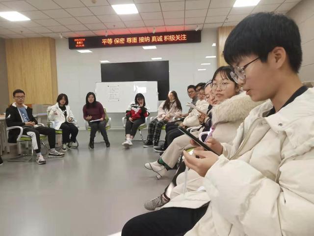 此次成长训练营特别注重引导营员关注自己的切身感受,因此每一个活动结束后老师都会让学生表达自己内心的感受,表达者的倾诉,倾听者的聆听一直都伴随着这个集体。随着活动的一期期进行,每个参与者的身上都有了成长。犹记第一次的活动,心理辅导老师让同学们主动介绍自己,很快有几个同学就进行了自我介绍,随着他们介绍完,整个团体又恢复到了沉默当中。在沉默的“压力”下,逐渐“冒出”一个,两个,三个同学开始主动介绍自己,尽管他们中有人羞于、窃于在人前表达自己,但最后还是鼓起勇气勇敢的进行表达。这可能就是成长中的一次小成长。随着时间的推移,越来越多的人开始在这个团体里表达自己,讲述自己童年的经历,自己未来的人生方向,自己与家人的相处,开心的亦或是悲伤的,积极的或者负面的……每一次划分成小团体时,大家总好像有说不完的话,时间总是悄悄地溜走。